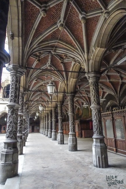 Il est alors décrit comme étant «une curieuse combinaison de style néo-gothique et de techniques révolutionnaires », en particulier sa construction métallique à l'intérieur et ses piliers magnifiquement sculptés, surmontés d’une galerie supérieure comprenant 38 colonnes.
