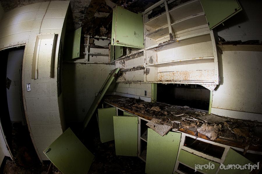 Il y a donc beaucoup de bâtiments ici : une école secondaire, une école primaire, deux dortoirs pour adolescents et trois bâtiments pour les enfants dont l’un servait de garderie aux enfants des adultes qui y travaillaient. Et ça, c’est sans oublier une grange, un garage, un poulailler, des aires de jeux, une cabane de chasseur et des chalets. Bref, une vraie petite ville en plein milieu des bois, à deux pas de la frontière états-unienne.