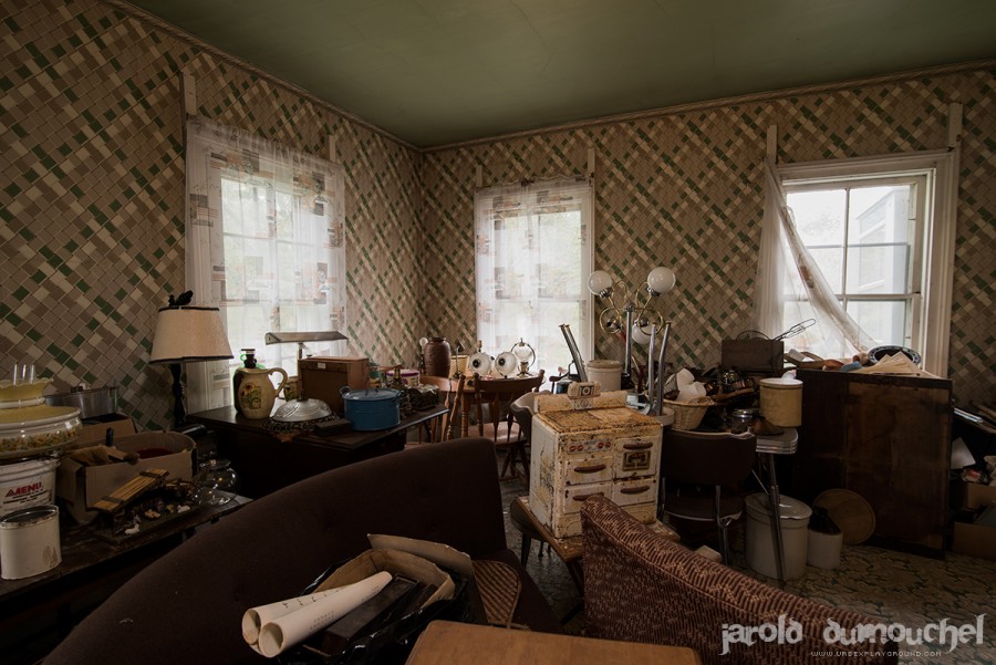 With a forestry industry on the decline, the rooming house has become over the years the property of an old lady who filled his loneliness by accumulating all sorts of things: furniture, frames and a variety of items she bought in garage sales. Upon his death, the three-story house was crowded to the point of objects that it was impossible to move in it.