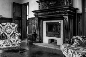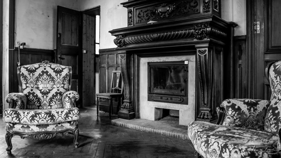 We guess that the castle, built in 1902, has been maintained for some time because, beyond the furniture which is still in place, the signs of time haven't affect the castle so much. Time seems to have stopped, as evidenced by the clock from the top of its tower.