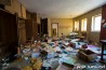 On the other side, the corridor leads to a room where bibles and other liturgical objects were stored. Everywhere, traces of vandalism are present. Besides, the hinges of the door leading to the presbytery have been cut by the hacksaw, left behind.