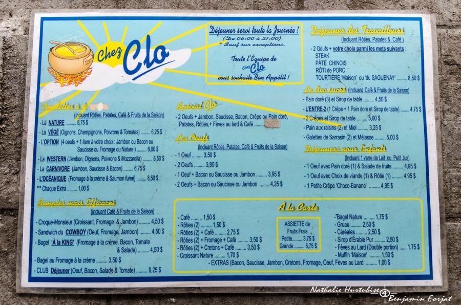 Chez Clo proposed the typical Quebec family food. Tourists often gathered to taste this cuisine like the locals, artists and politicians, not to mention the many taxi drivers ! Denise Filiatrault, Raymond Lévesque, Laurence Jalbert, former Mayor Bourque, Louise Harel and many others could enjoy the comfort food of Clo. She has also won awards for her poutines, meat pies and her famous «tournière du Lac Saint-Jean» . «The real one» she says. At the counter, you could even get these homemade dishes to-go !