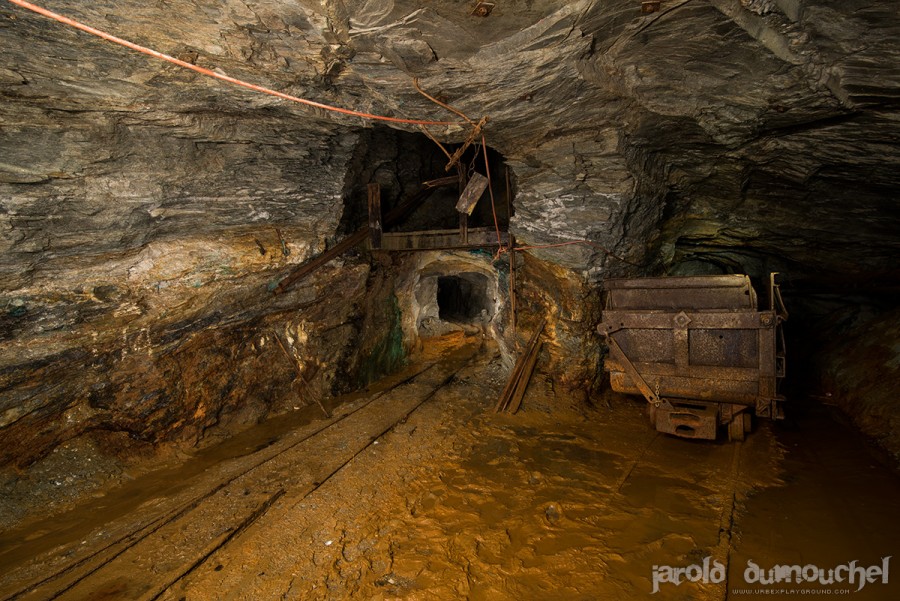 Inside the mine, the relics of a bygone era await there, gnawed by the rust. 30 centimeters of opaque water cover the rails and make this walk risky. The water is cold and you don't see your feets. The humidity through you like a sieve. Ten degrees Celsius also separate the external temperature from the inside. The place is quiet. Except for our feet in the water, we hear only these drops of water falling from the ceiling. In some places, limestone stalactites have formed and are about 30 centimeters long.